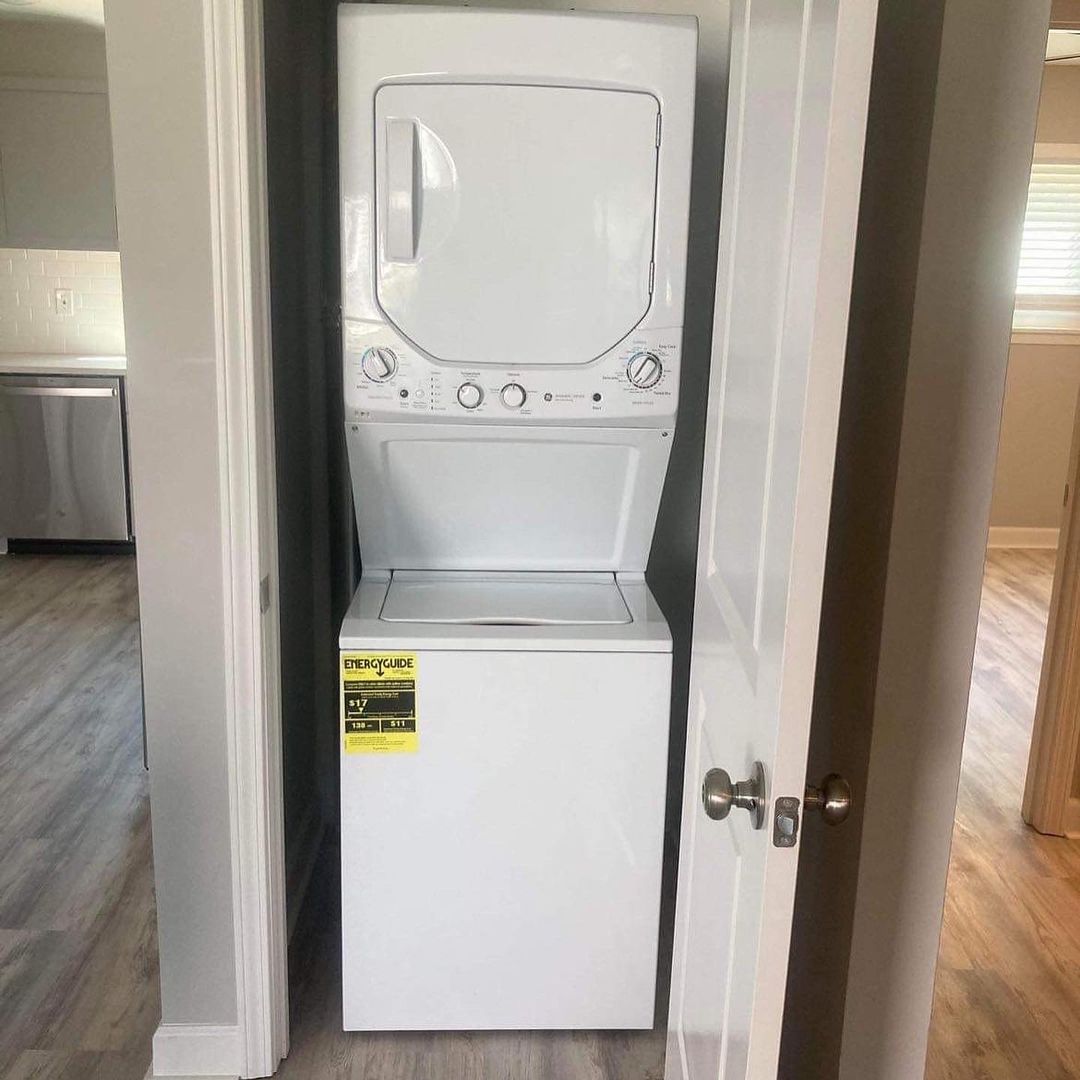 • Stainless steel appliances. (stove, refrigerator, dishwasher, and a stacked washer/dryer)